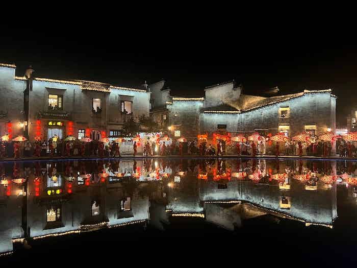 下午因公司有急事,不得不回酒店处理。待到傍晚,我们再次进宏村去看鱼灯。鱼灯巡游的队伍倒映在月沼中,很是好看。看完后回到酒店,继续工作到零点,举证低绩效人的问题以及自证清白这样的事情很让人不舒服,但又不得不做,不知道过完年要是一起滚蛋后是不是一种解脱。。。