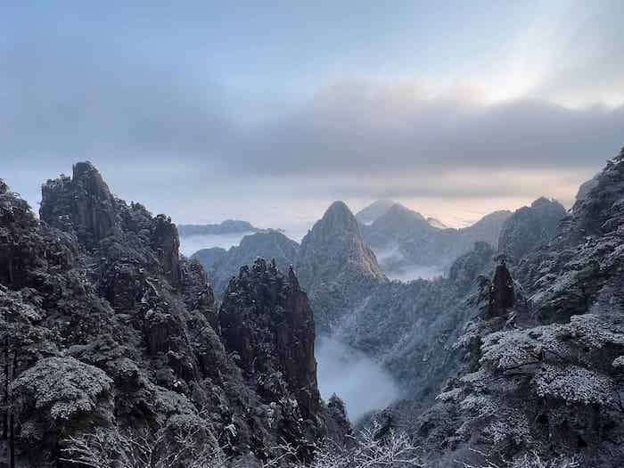 住:住在宏村附近酒店,后来在黄山上住了两天,其中一天是为了赌一下雪后雾散后的日出