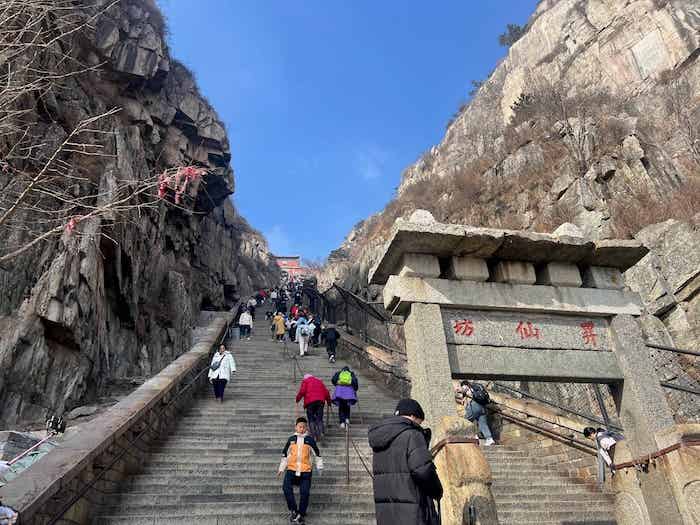 古人讲究“登泰山从岱庙开始”,我们的行程也是如此。岱庙又称东岳庙,是历代帝王举行封禅大典前祭祀泰山神并下榻的地方,被视为泰山文化的起点。我们早上从岱庙南门(正阳门)出发,穿过北门,步行十多分钟便抵达了泰山红门,这里是徒步登山的起点。古人认为东方是万物交替、旭日东升之地,所以泰山贵为“五岳独尊”。