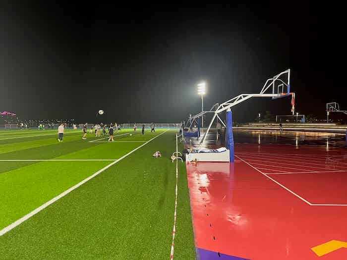 出岛后天开始下雨,下午去韩乐坊吃烤肉,然后开车到海边的幸福公园。孩子吃多了去对面商场找厕所,我在公园散步,海边的足球场和篮球场修建的很漂亮,住在这附近的人真幸福。