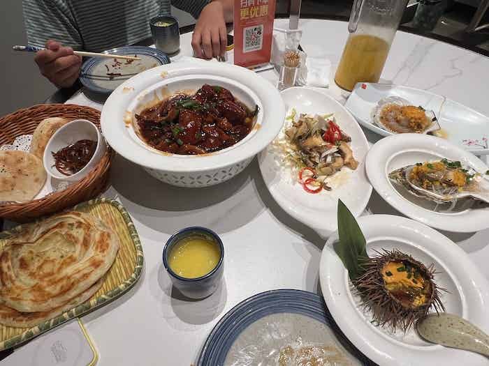今天中秋,打算吃顿大餐,搜到“映像威海”,感觉是真正的当地人常去的店。店里没有菜单,照着食材点菜:大郎烧饼、葱花饼、水饺、红烧肉、温拌海螺、炒青菜,扇贝、海胆、生蚝各点一个,味道都不错,温拌海螺最好吃。吃完去金沙滩溜达,海边海鸥很多,人少景美,这里也是此行最喜欢的沙滩。后来又打卡“火炬八街”和“国际海水浴场”,人多景也一般。