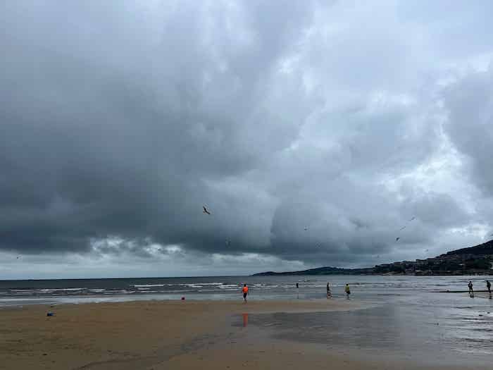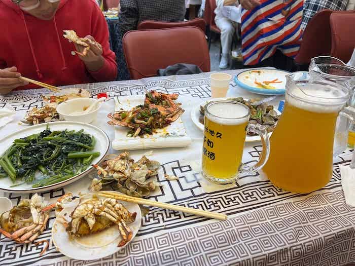 睡到自然醒,外面在下雨。先去吃了海鲜馅锅贴,然后打卡“日照灯塔风景区”和“万平口海滨风景区”。结果被狂风暴雨淋湿两次,孩子说什么也不继续去“太公岛牡蛎公园”赶海,于是直接导航去青岛。途经曾被评为“全球最棒的桥梁”之一的“胶州湾跨海大桥”,历时 2.5 小时到达青岛。晚上在台东海鲜市场买了三只螃蟹、一斤蛤蜊,找家啤酒屋加工,配两扎原浆,喝完回酒店睡觉。