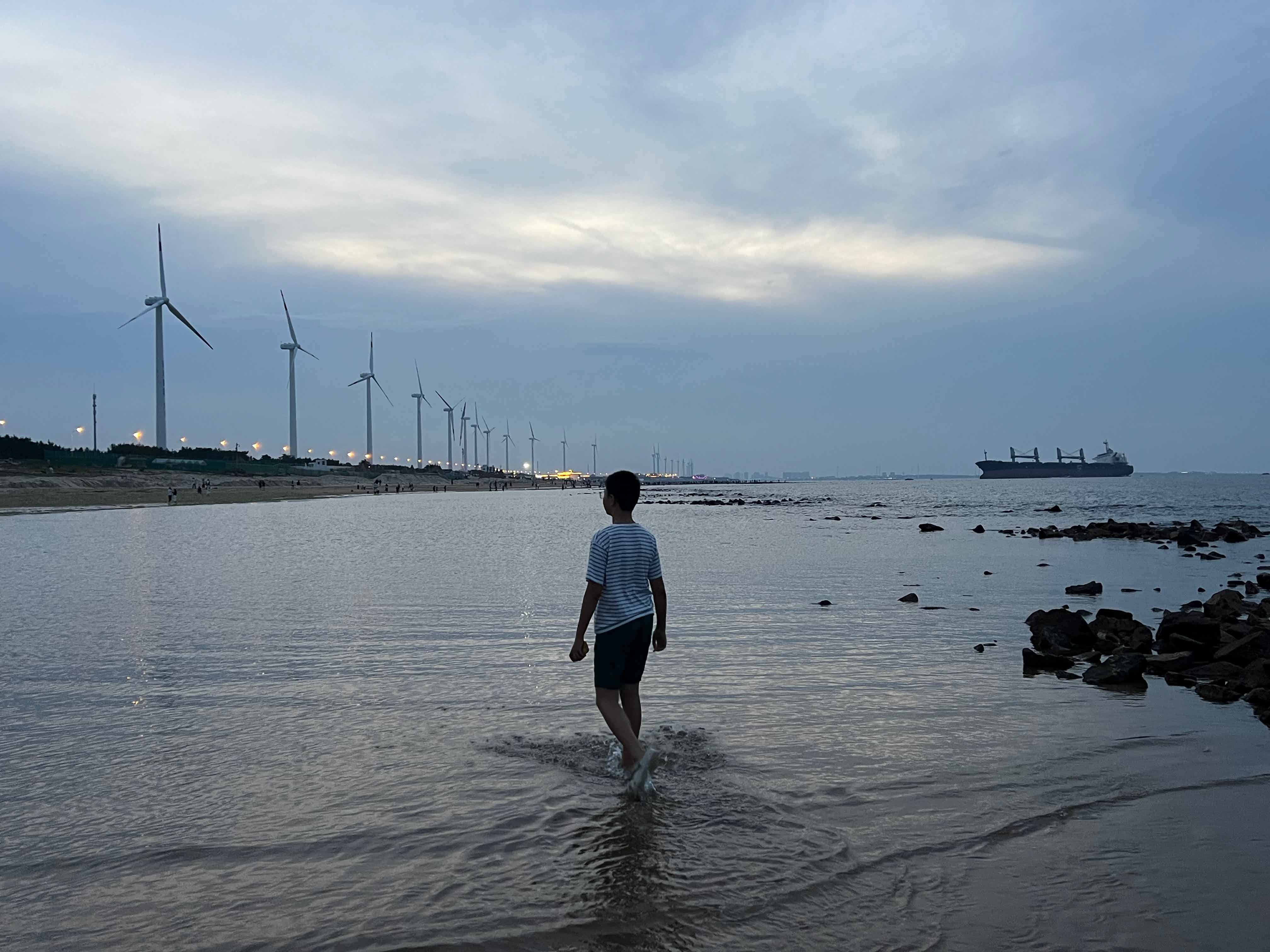 离开酒店后买了麦当劳和咖啡,边吃边开车上高速,孩子吃了两个汉堡、一个派和一些小食,胃口真好。大约 3 小时后到达距离搁浅巨轮 3 公里的地方,又在找停车场时堵了 1.5 小时。停好车后去海边玩到天黑,再沿“滨海公路”开车约 1.5 小时抵达威海入住。晚上在酒店附近吃烧烤,味道意外地好,他家的沂蒙炒鸡分量也超大,剩了不少。