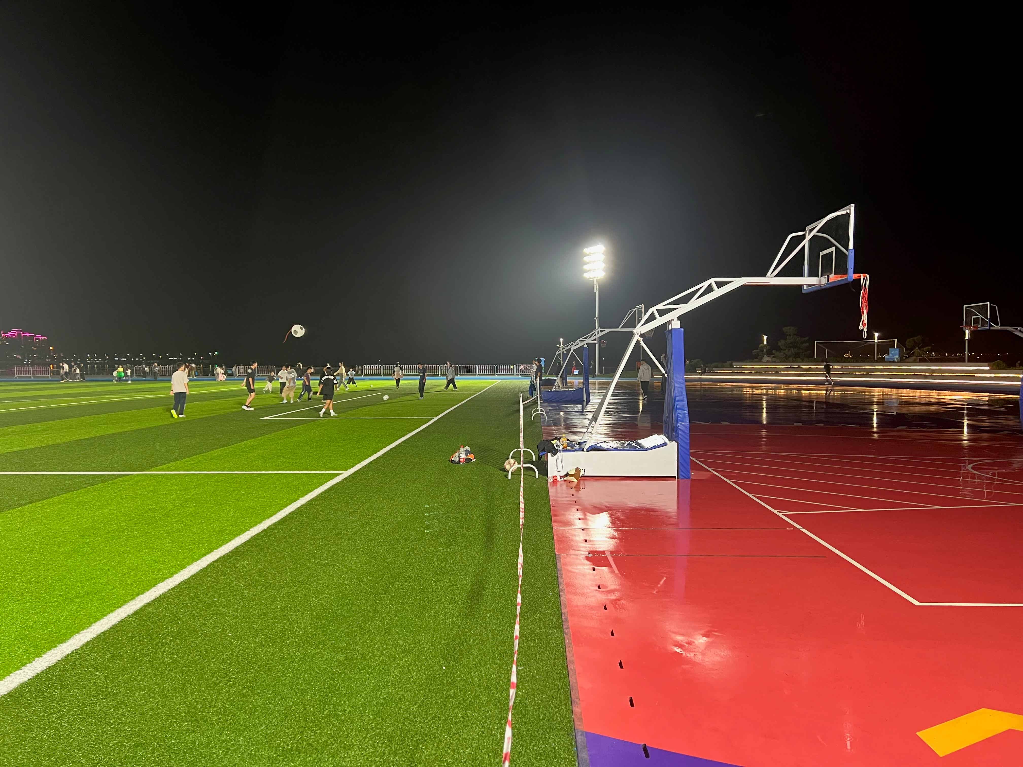 出岛后天开始下雨,下午去韩乐坊吃烤肉,然后开车到海边的幸福公园。孩子吃多了去对面商场找厕所,我在公园散步,海边的足球场和篮球场修建的很漂亮,住在这附近的人真幸福。